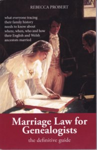 Marriage Law for Genealogists: The Definitive Guide. By Rebecca Probert. Published by Takeaway Publishing. Copies obtainable directly from the author at books@takeawaypublishing.co.uk or on Amazon. 2012. 160 pp. Illustrations, index. Softcover. $14.99.