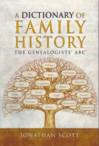 A Dictionary of Family History: The Genealogists’ ABC. By Jonathan Scott. Published by Pen & Sword Family History, 47 Church Street, Barnsley, South Yorkshire S70 2AS, UK www.pen-and-sword.co.uk. £14.99. US Distributor: CasemateIPM 1950 Lawrence Road, Havertown PA 19083. www.casemateipm.com. $24.95. 2017. 247 pp. Softcover.