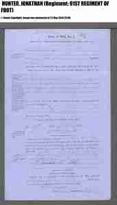 On the reverse, which is actually the outside of the document when it is folded is a summary – The Will of Jonathan Hunter of the 91st Regt. Of Foot dated 20 April 1864. W.O. Form No. 897.